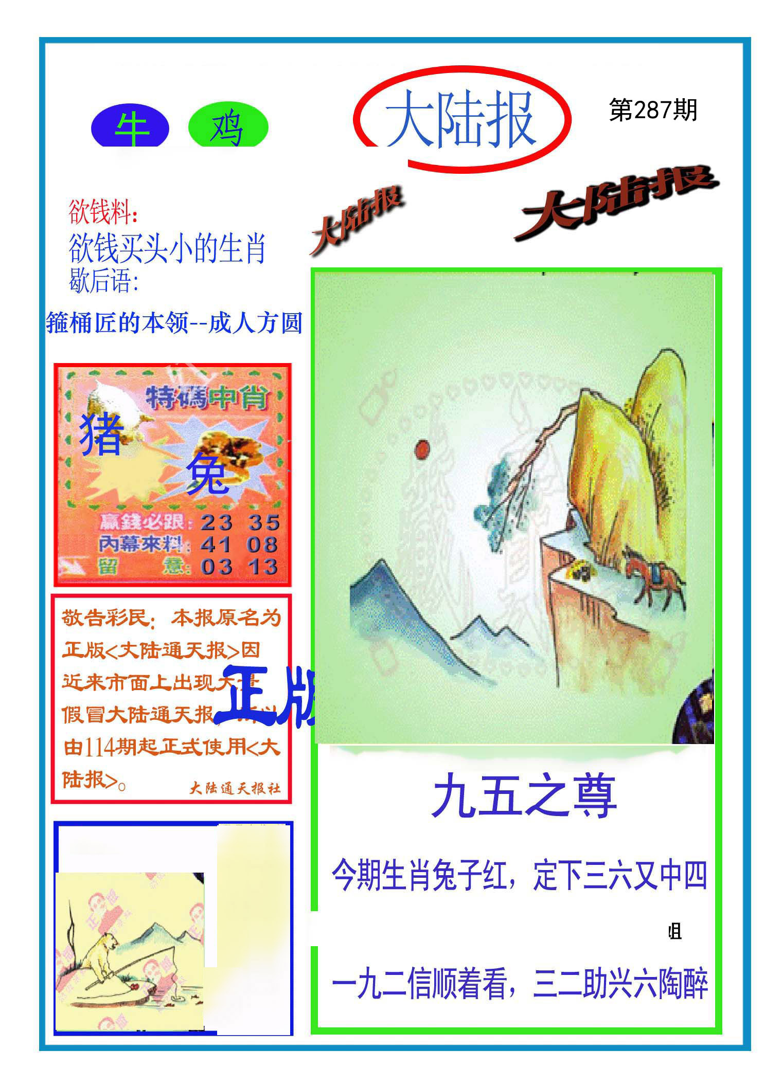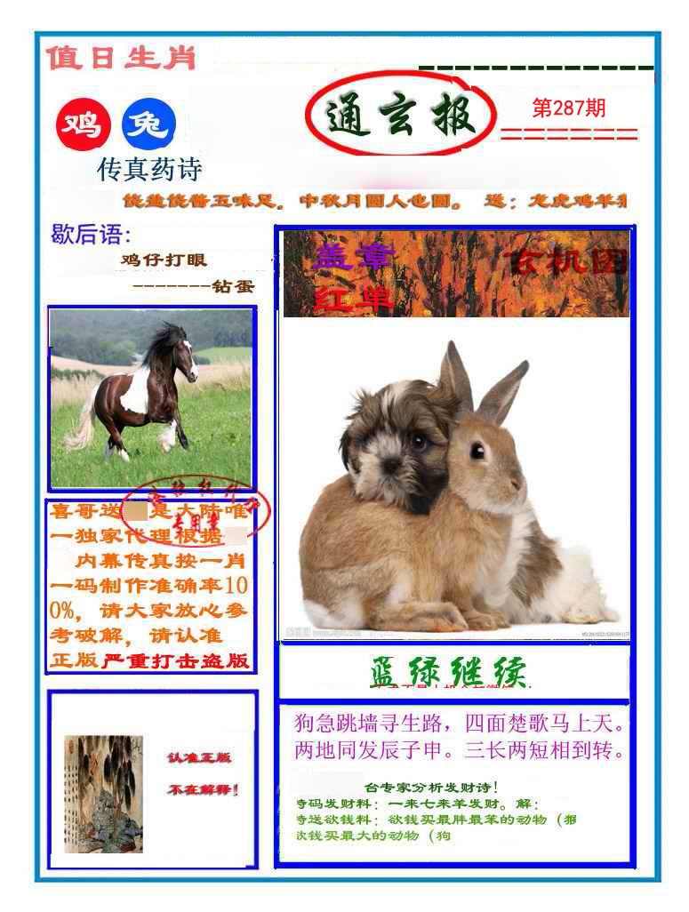 287期: ⑤肖 | 羊狗牛龙兔 | 兔03中 |