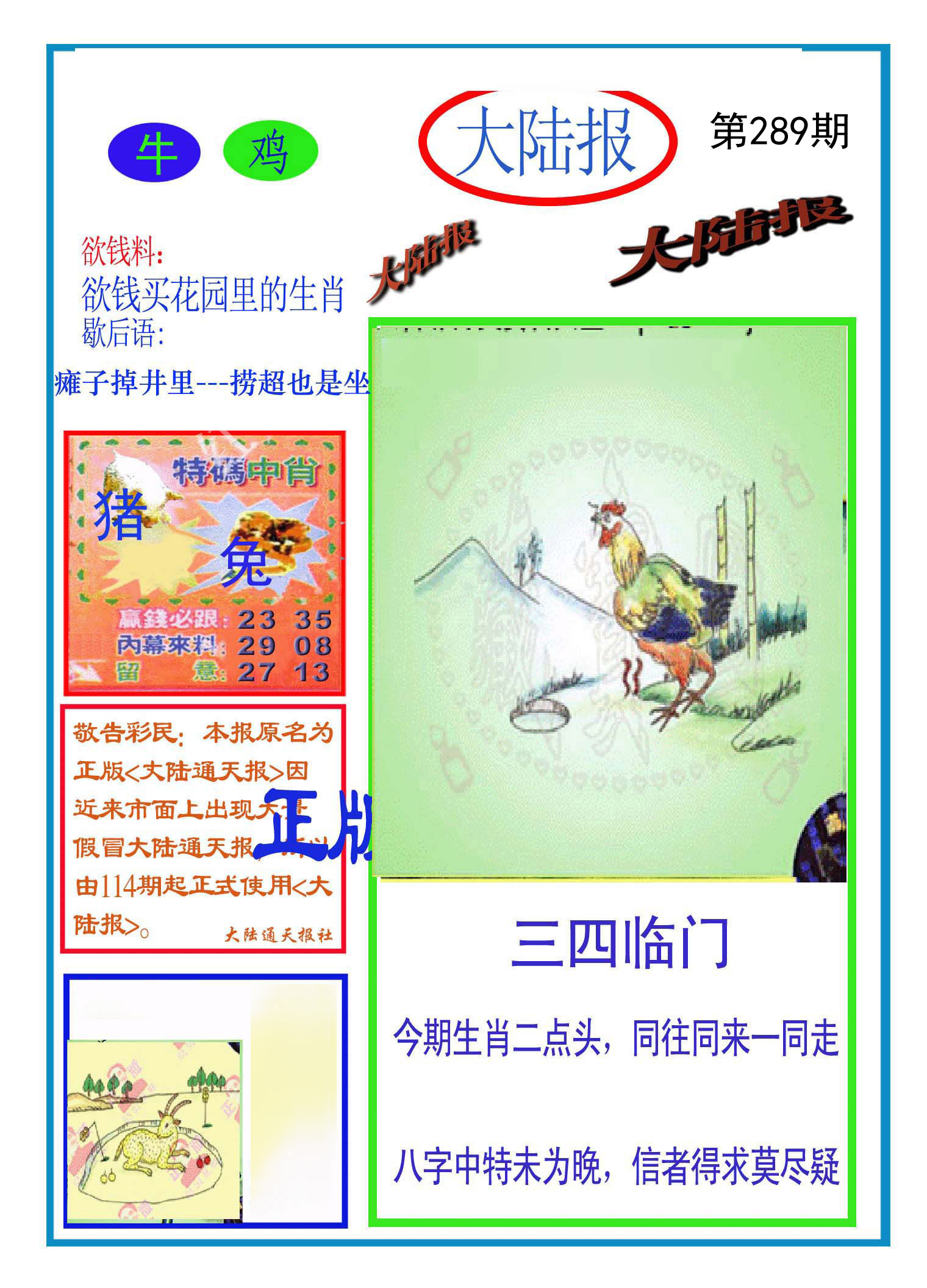 289期: ⑦肖 | 鼠猪兔羊虎马鸡 | ????中 |