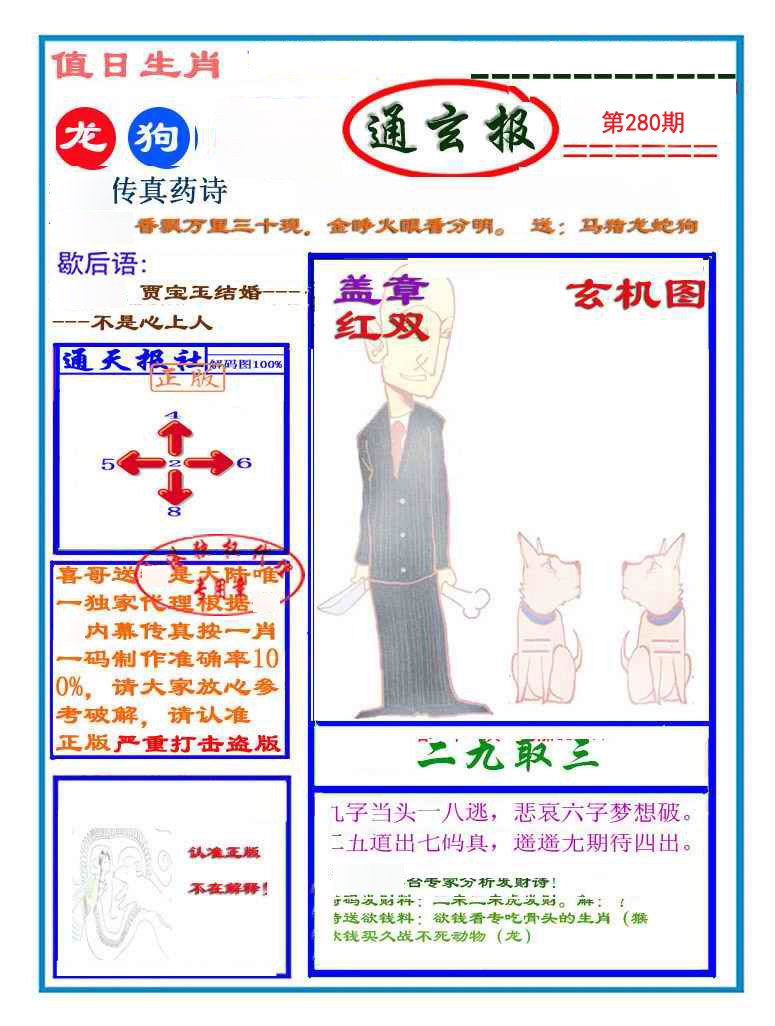 280期: ④肖 | 羊猪鼠龙 | 狗08中 |