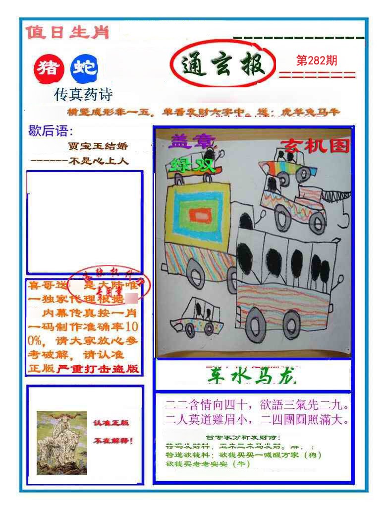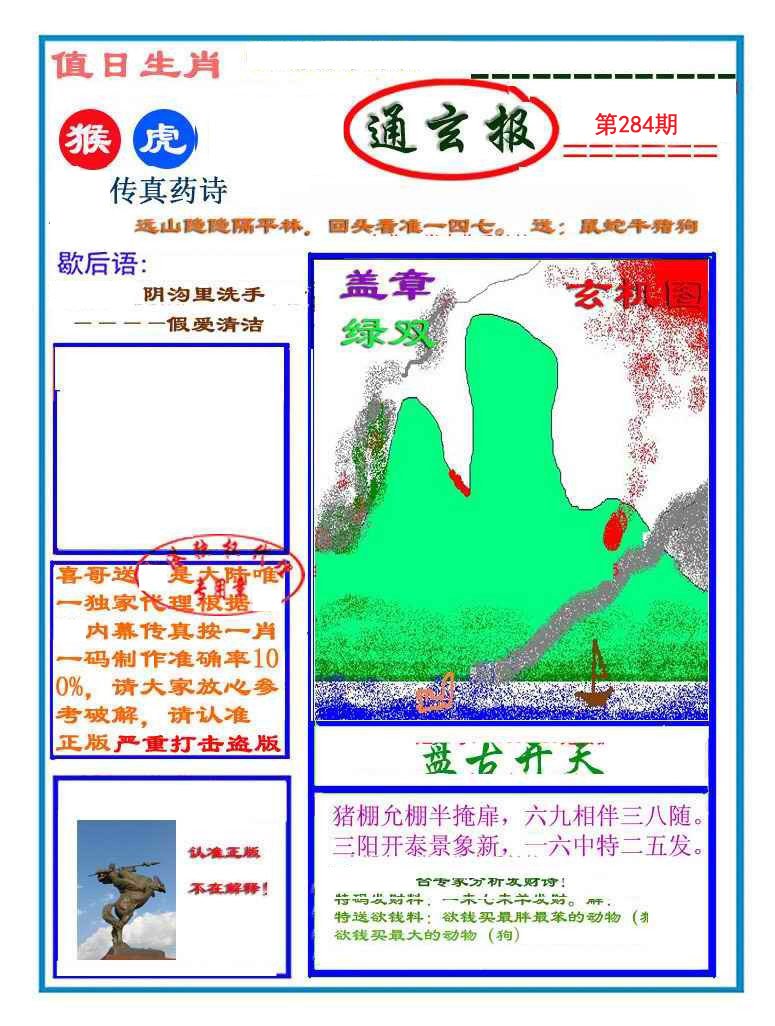 284期: ⑥肖 | 马虎蛇鸡龙羊 | 猪07中 |