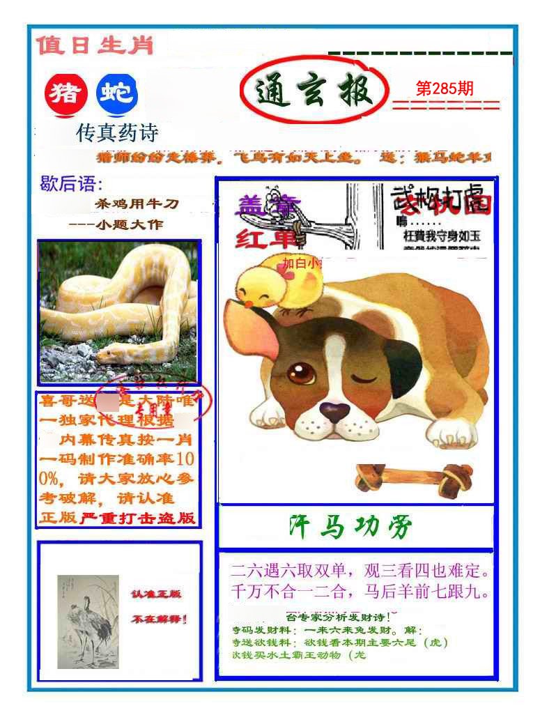 284期: ⑤肖 | 马虎蛇鸡龙 | 猪07中 |